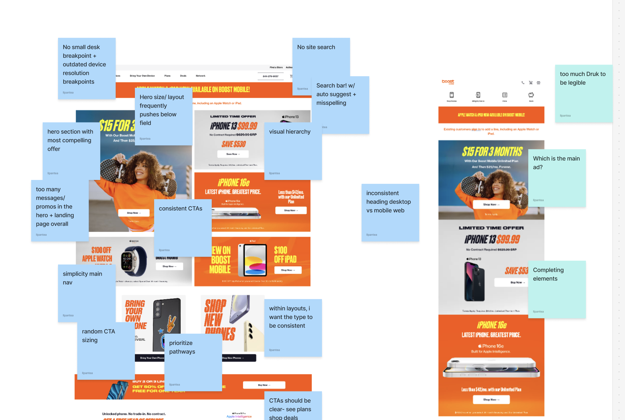 In July 2024, Boost Mobile and it’s postpaid spin-off Boost Infinite unified under the single rebrand: Boost Mobile. With this merging, the user’s experience on the website suffered from a lack of alignment across design and development teams, resulting in fragmented user flows and inconsistent patterns.